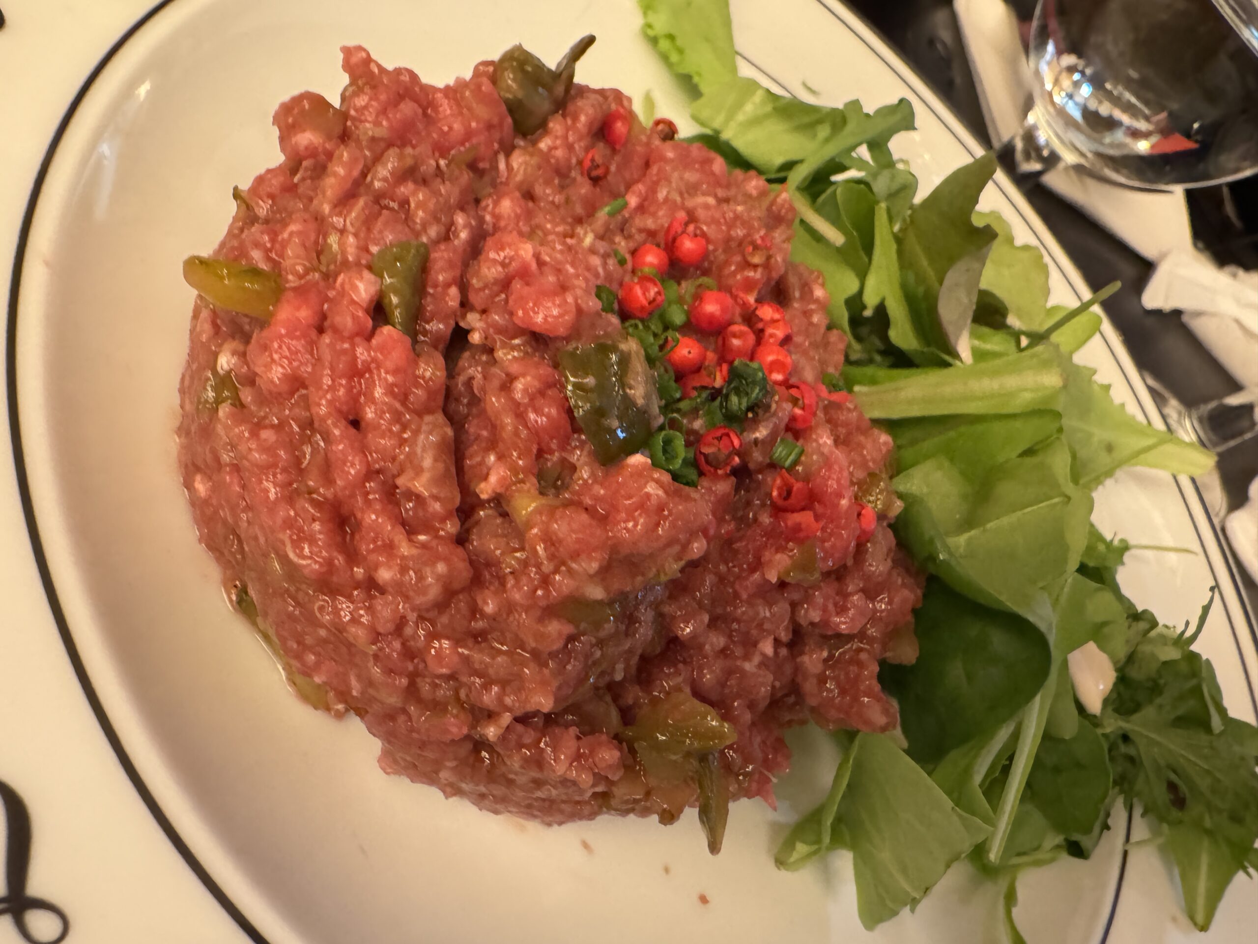 そしてメニューに珍しくタルタルステーキの名前を見つけたよ。自分と娘はこのタルタルステーキをいただくことに。
