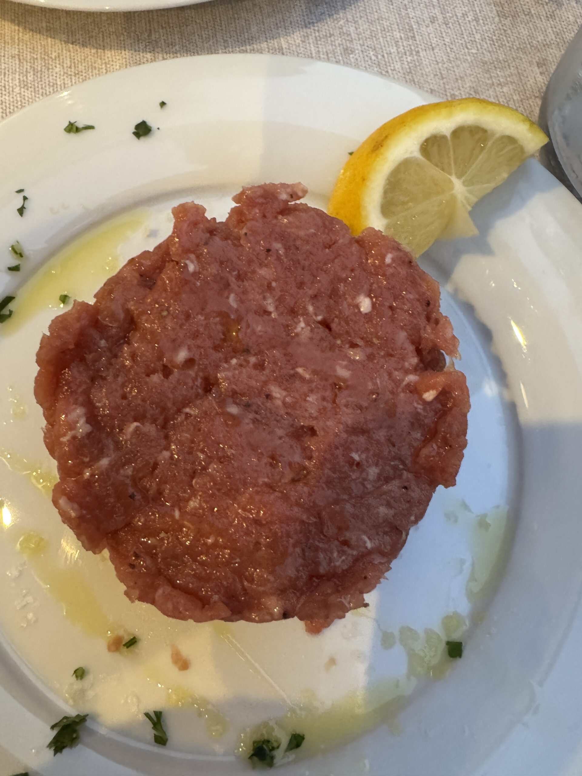これでお会計は70ユーロ。考えられないね。感心したのが、この“タルタルステーキ”です。何、このボリュームと新鮮さ。自分としては赤ワインとタルタルとパンでもう十分です。