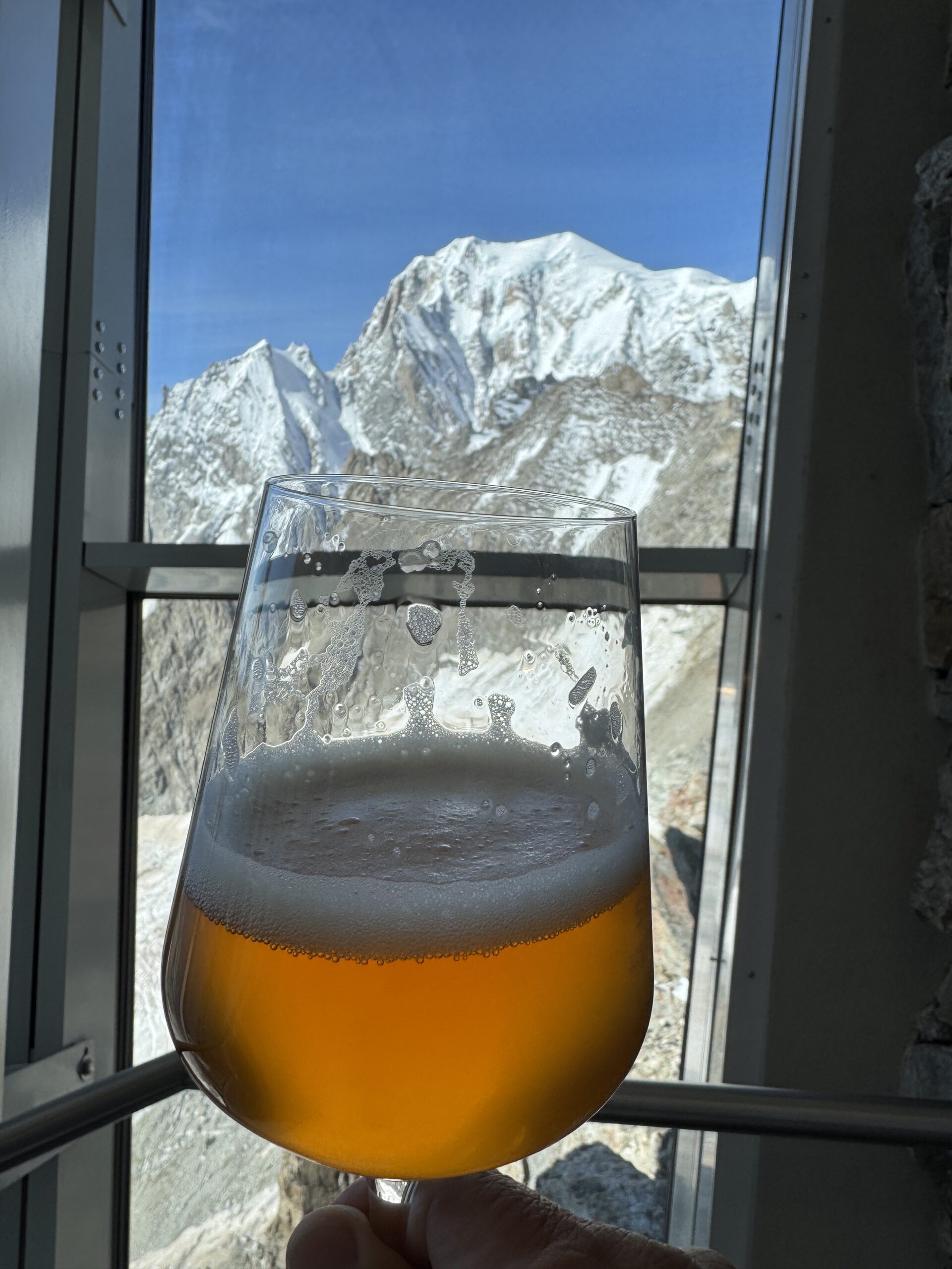 そして、レストランで目の前にモンブランを見ながら、モンブラン・ビールを。これが一番の楽しみ。
