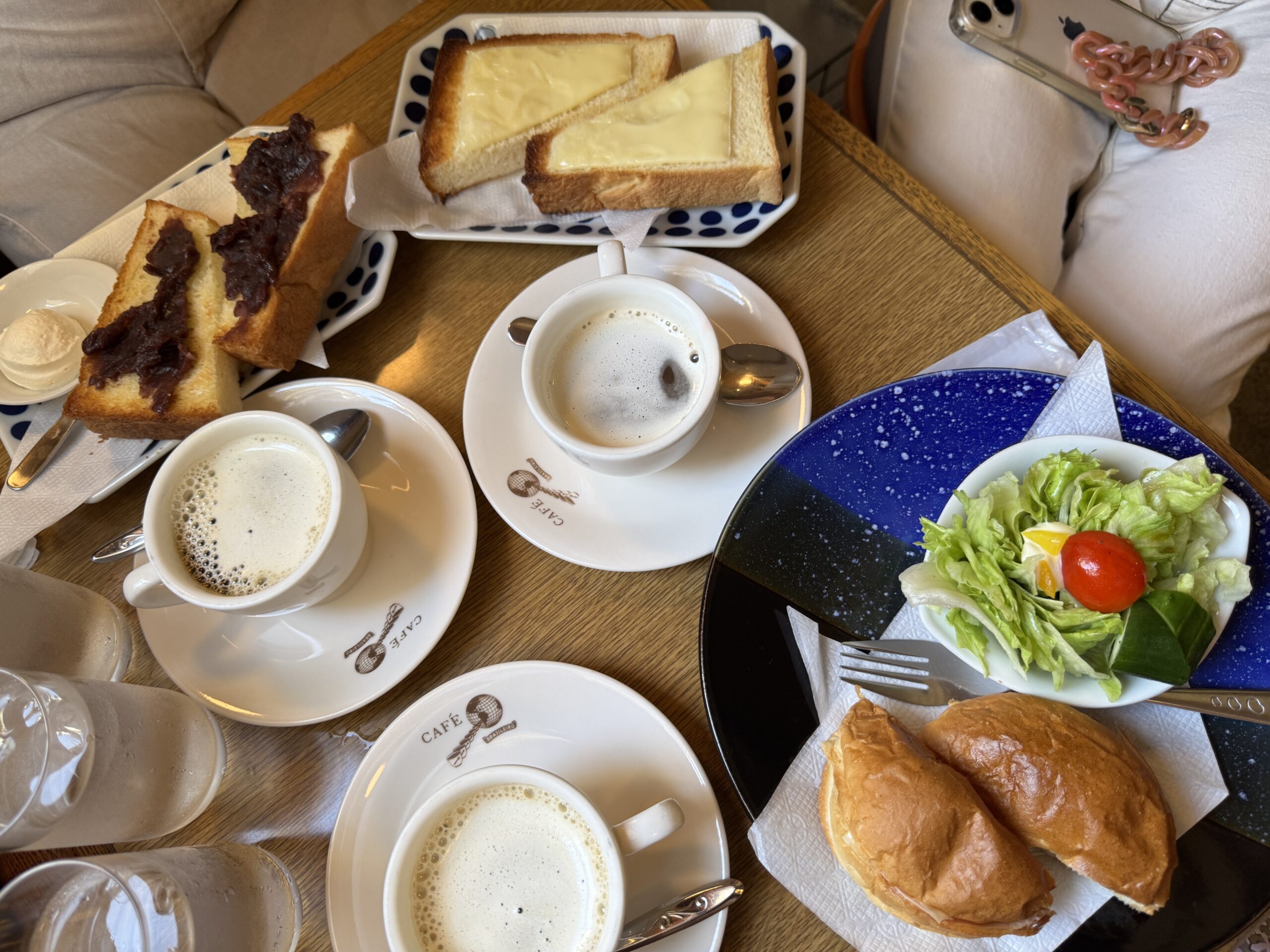 連れ2人は通常メニューのチーズ&あずきトーストセットをご注文です。